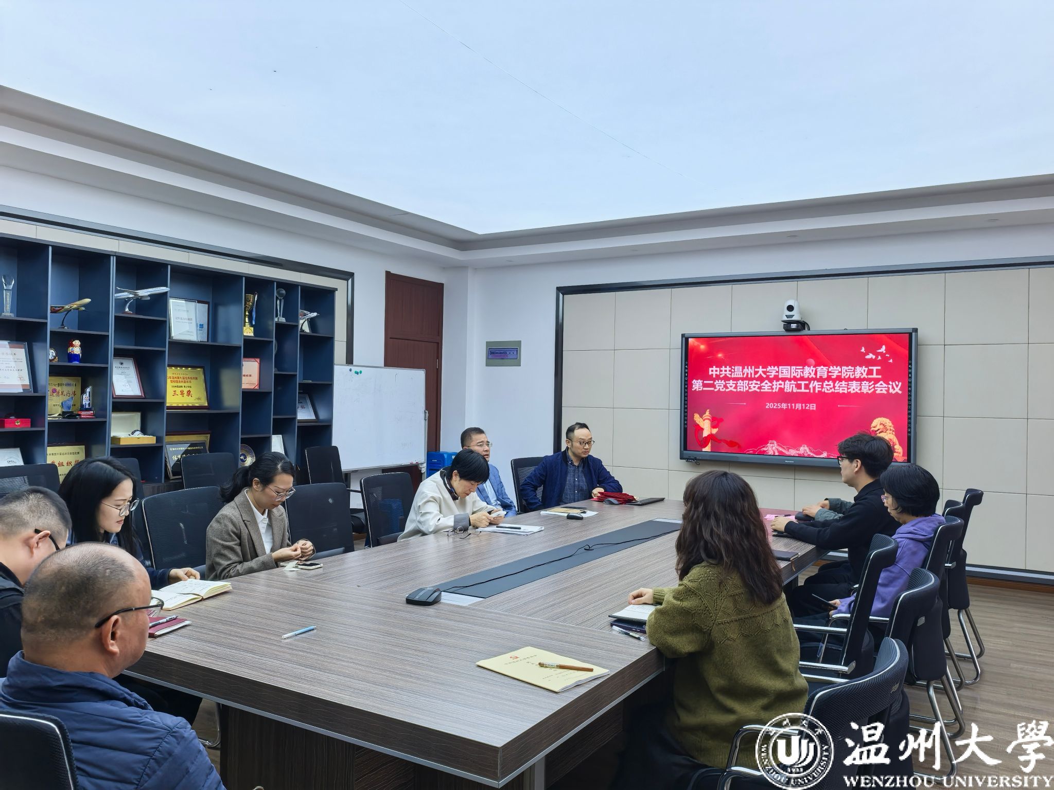 2025年11月12日,国际教育学院教工第二党支部在学院311会议室召开了一场别开生面的安全护航工作总结表彰会议。会议全面复盘了以“留学生校外住宿大走访”与“国庆假期安全保障”为核心的两项重点工作,并对在其中涌现出的先进个人进行了隆重表彰。