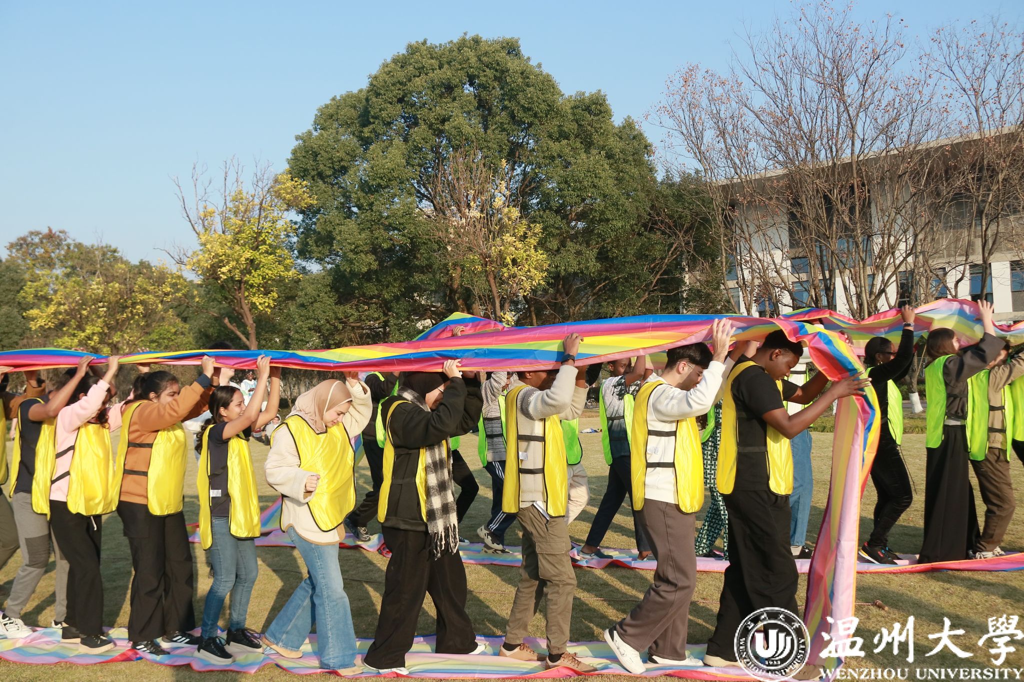 冬日校园,暖意融融。12月17日下午,温州大学2025级国际新生心理团体建设活动在大学生活动中心热烈开展。本次活动特邀温州市第七人民医院心理专家叶宅祥、徐慧慧、应梦珍三位医师共同引导,他们将心理健康教育理念融入趣味互动环节,帮助国际学生进一步适应环境、凝聚共识。在轻松愉悦的氛围中,来自世界各地的学子通过团队协作与交流,进一步加深理解、凝聚共识,逐步构建起互助支持的成长网络。