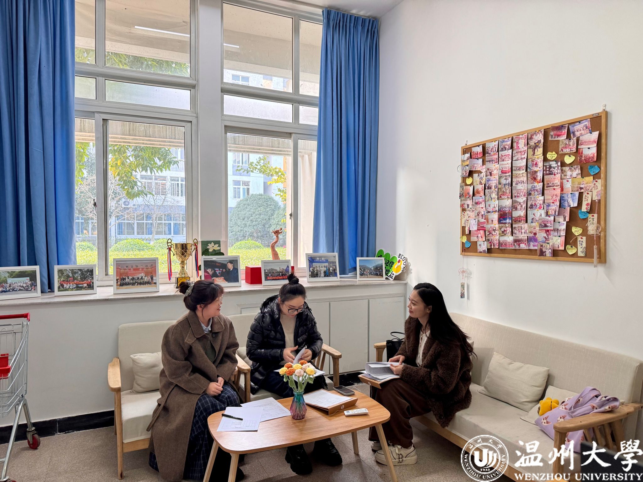 1月6日,温州大学学工部部长姜海燕带队,与校心理健康中心沈怡彤、程嘉璐老师一行,深入国际教育学院国际学生心理辅导站,就心理辅导站标准化建设及心理健康教育工作进行实地走访与指导。