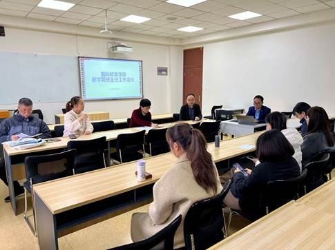 2026年3月4日,国际教育学院(留管部)召开新学期班主任工作会议,系统部署新学期国际学生教育管理服务重点任务。学院党总支书记林爱菊出席会议,党总支副书记丁强主持会议,全体班主任及学工办工作人员参会。