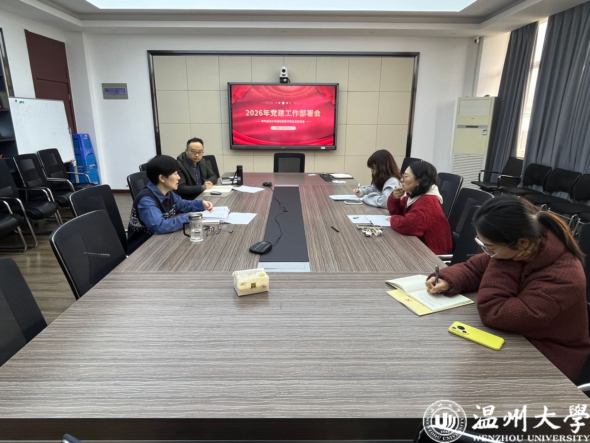 随后,林爱菊书记对2026年度党建工作作出部署,他指出2026年是学校“十五五”规划开局之年,也是学校来华留学教育规范建设年。她强调,各党支部要严格按照新时代党的建设总要求,规范化、标准化开展各项工作,严格落实“三会一课”、主题党日等基本组织生活制度,不断提升支部建设水平;要切实发挥党支部教育党员、管理党员、监督党员的核心作用,加强党员思想政治引领,引导全体党员坚定理想信念、锤炼过硬作风,充分发挥支部的战斗堡垒作用,全面推动支部工作与学院中心工作深度融合,为学校“十五五”规划开好局、起好步提供坚实支撑。