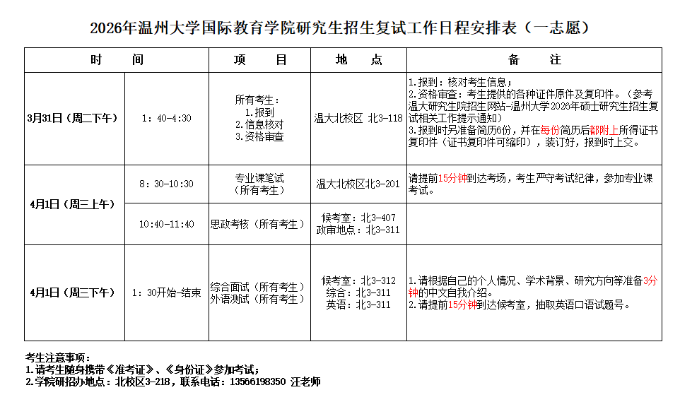 一、复试时间安排(一志愿):